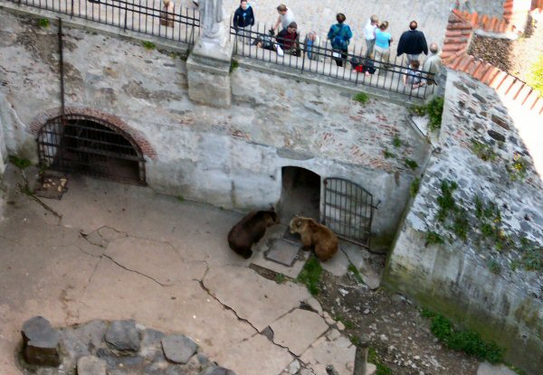 Brown bears guarded the entrance to the castle